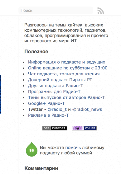 | 22:42:08 | alepavel | Всем привет, я после юбилейного (когда было 10 лет) начал переслушивать радио-т с самого начала, плюс еще с пиратами |